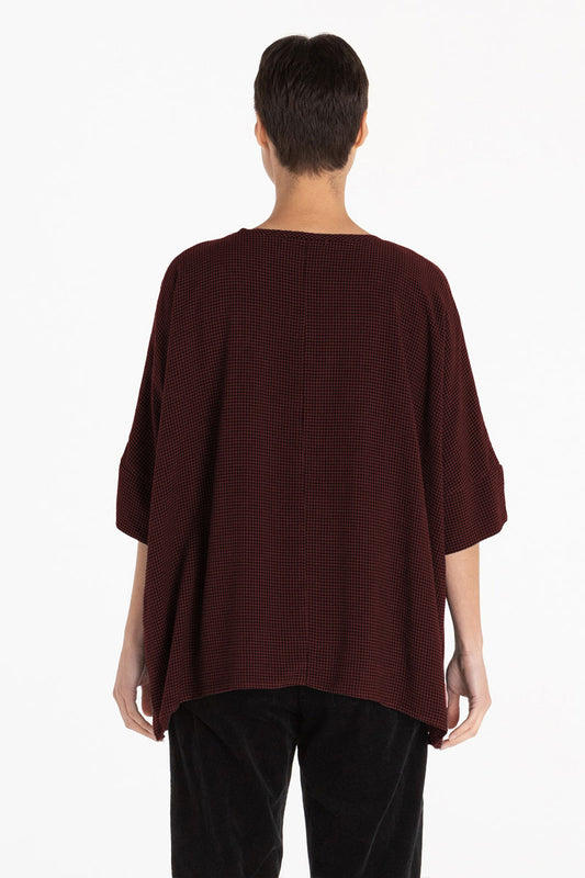 Mini Check 3/4 Sleeve Cowl Top - Cinnabark