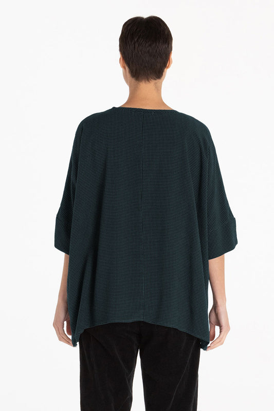 Mini Check 3/4 Sleeve Cowl Top - Lentil