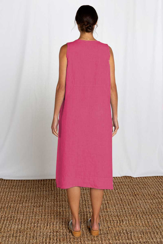 Sold outSolid Linen Seamed Easy Dress Berry