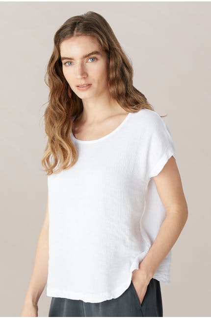 Crinkle Linen Top White