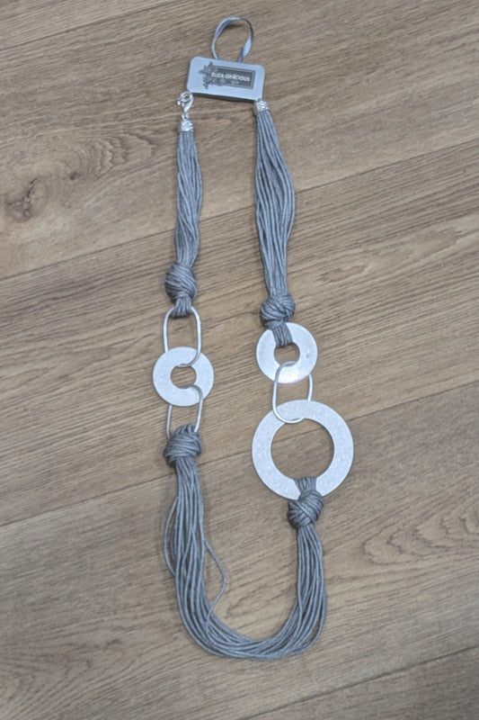 Long Double Strand Metal & Resin Necklace - Grey