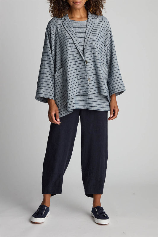 Linen Viscose Stripe Boxy Jacket