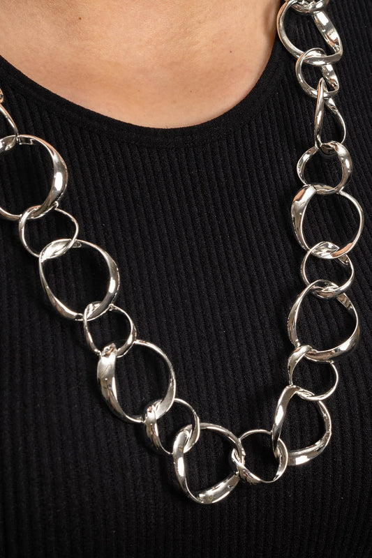 Long Bead & Crystal Ring Pendant Necklace - Grey