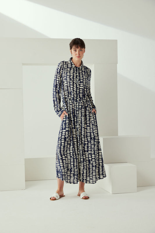Marine Print Smock Detail Dress