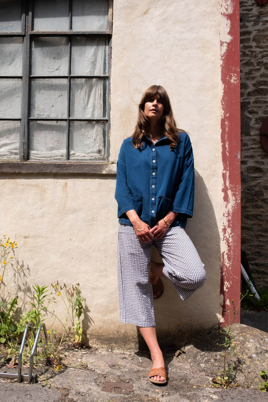 Elise Oversized Top - Sapphire Check