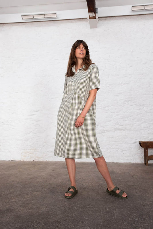Seamed Bubble Crinkle Check Dress - Verde