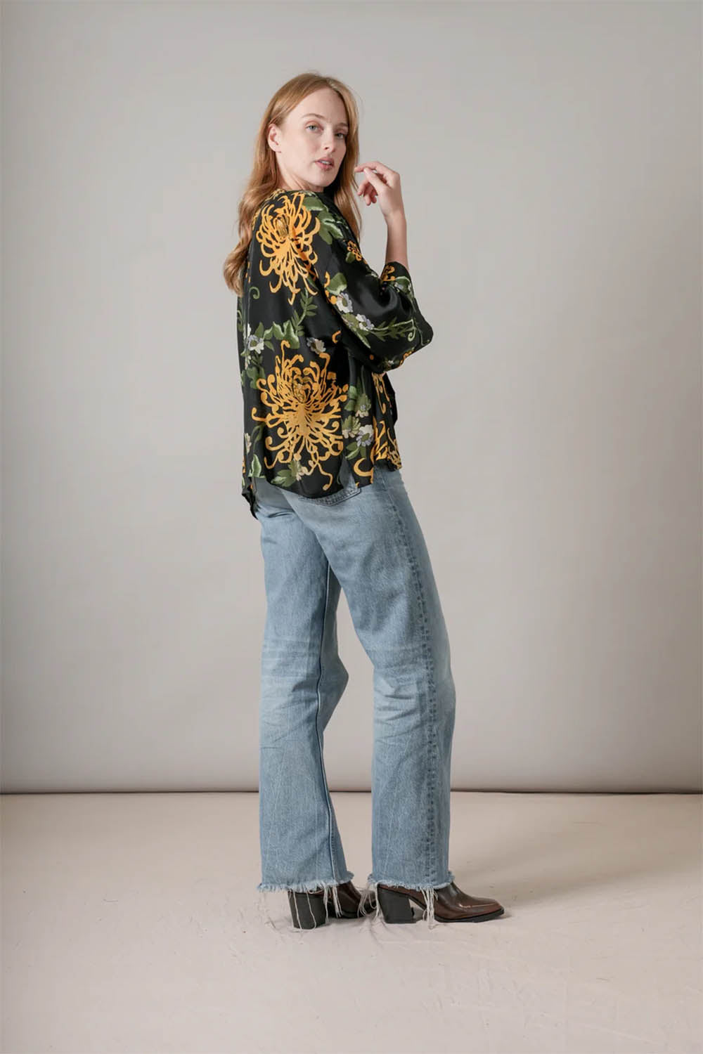 Our Chrysanthemum print celebrates the beauty of this elegant flower and its stunning yellow florals! Perfect for any time of year, this joyous floral print is perfect for pairing with a colourful accessory, shoes, or lipstick!