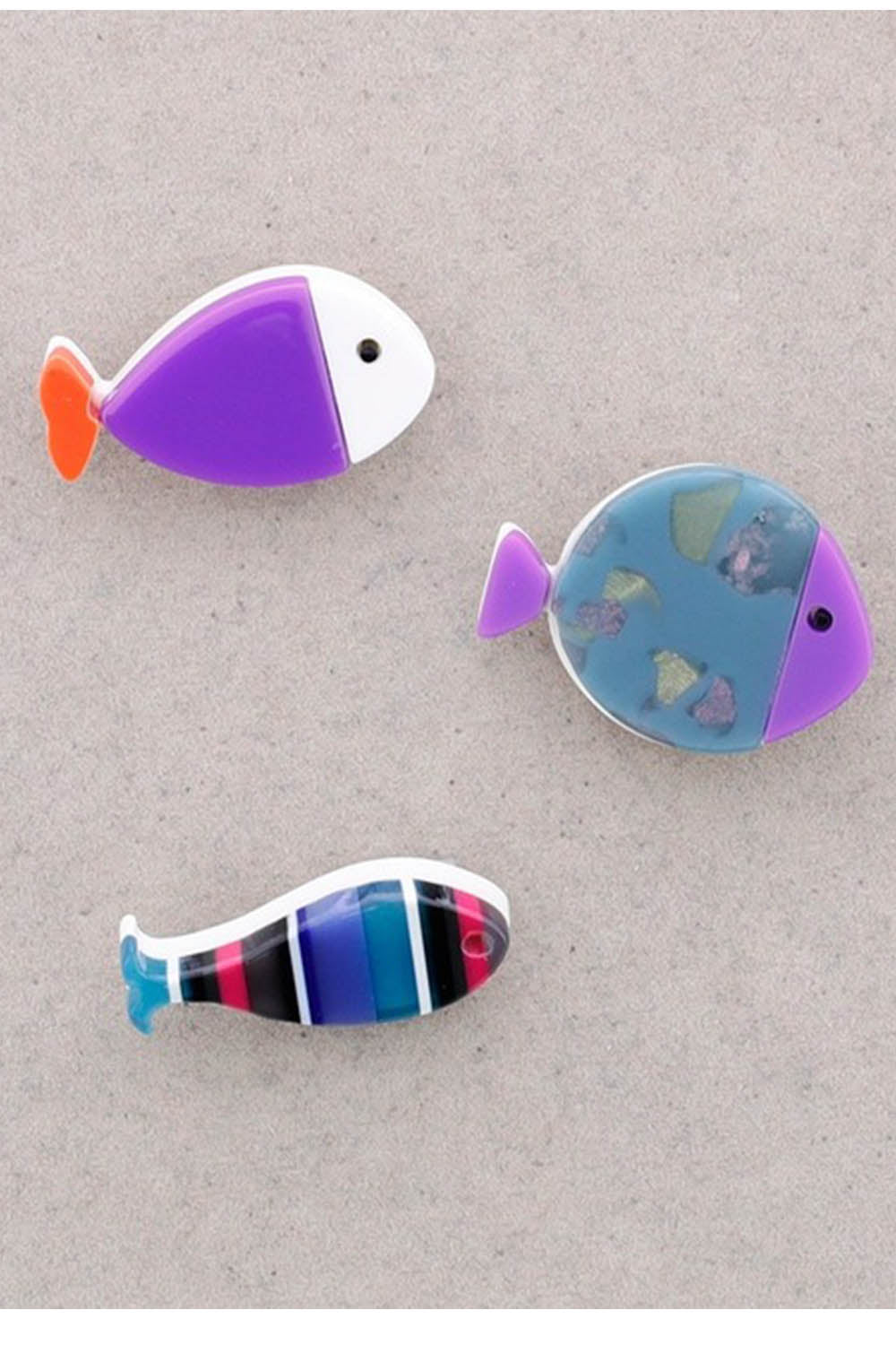 Sonata trio of small fish brooch set. Three brightly coloured small resin brooches that can be worn individually or together as a set.