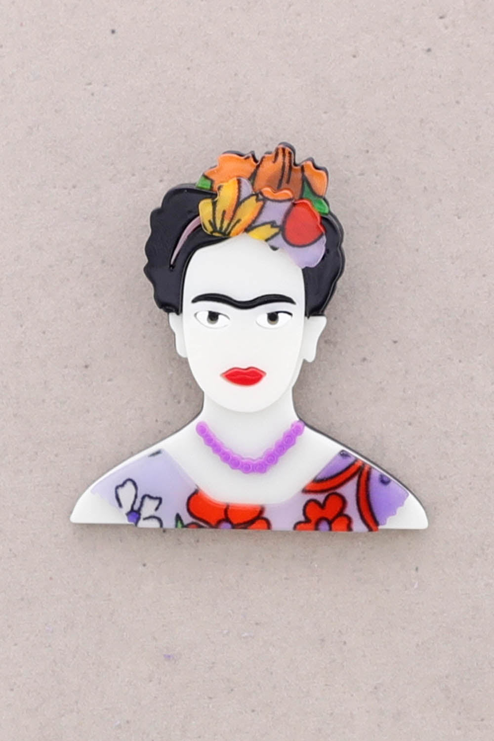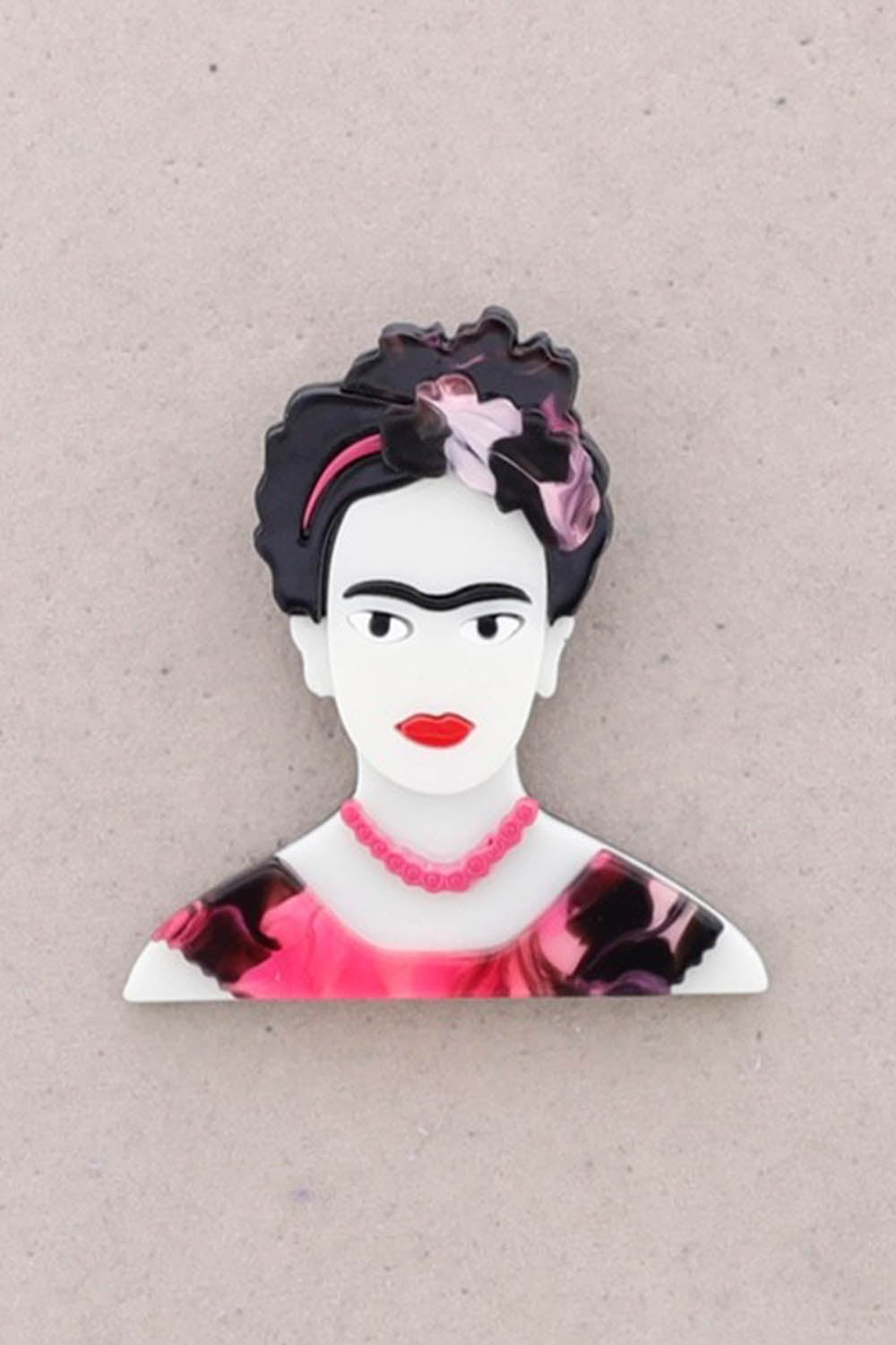 Sonata Frida Kahlo resin portrait brooch. Fabulous statement brooch featuring the iconic artist's self portrait.
