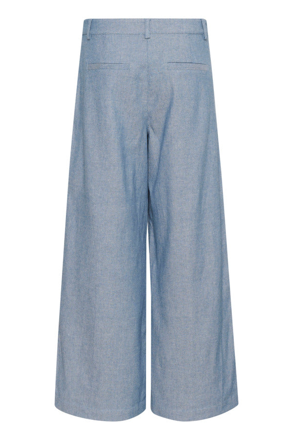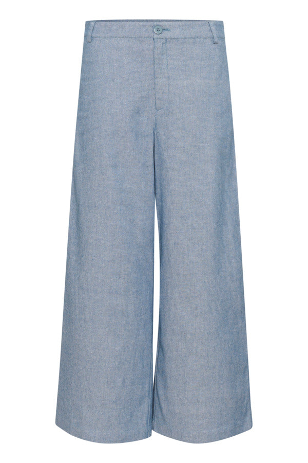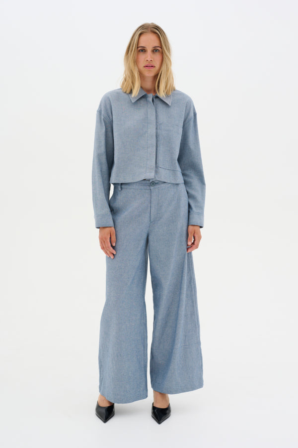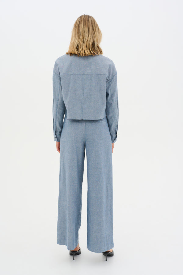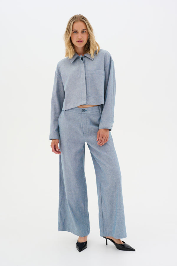 Smart trousers in woven denim marl fabric. Stunning style with wide legs. Wear with matching boxy jacket to create a smart suit or add a white shirt and tank top for a preppy casual look.