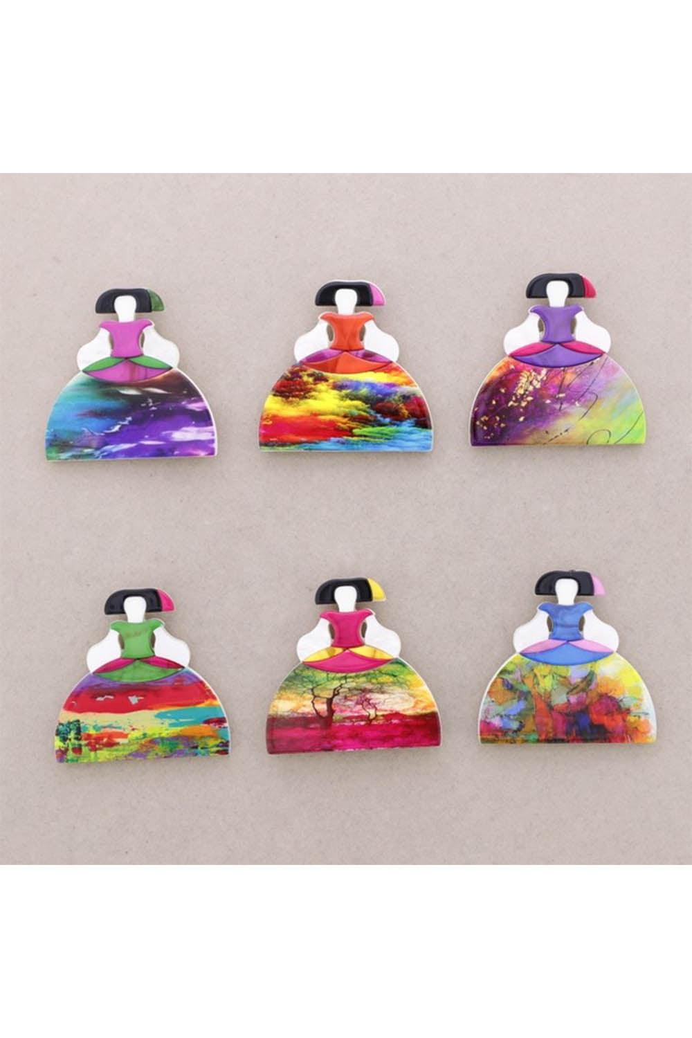 Jessie Juniper Sonata brooch. Girl in a watercolour skirt brooch. Larger than the original Menina Brooch.