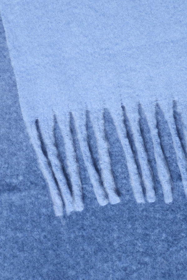 ICHI scarf in two tones of blue. Large scarf with fringe detailing on each end.