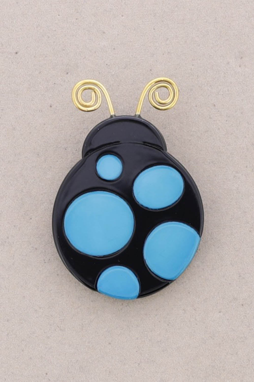 Sonata Jessie Juniper resin ladybird brooch. Fun brooch in contrasting colours & metal antenna. Traditional brooch backing.