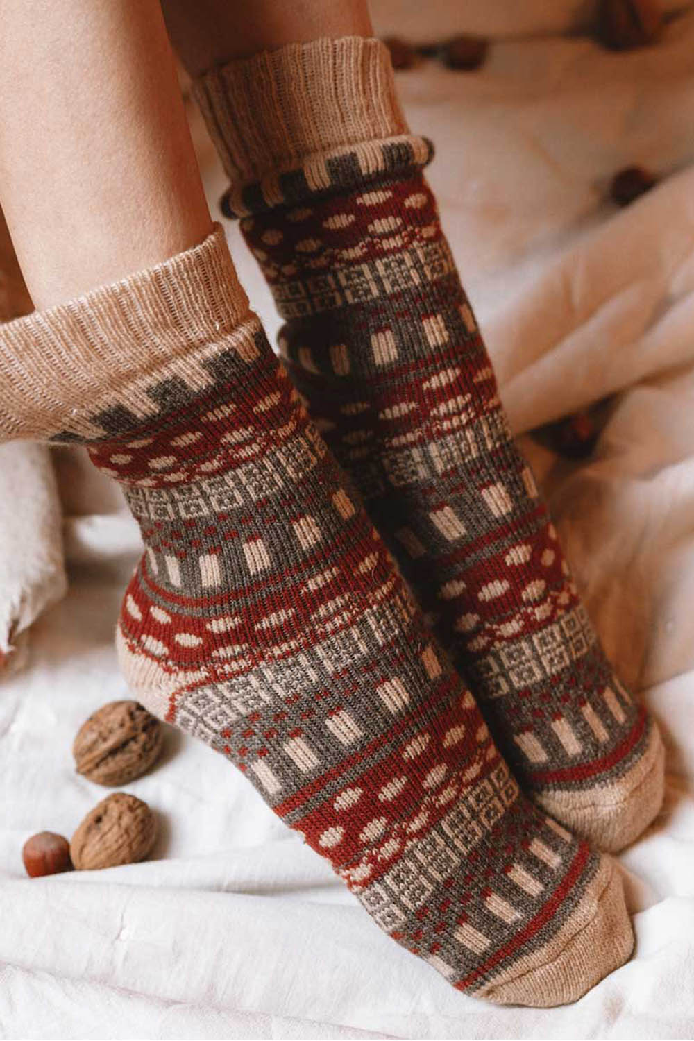 Regardless of what your mood is today, the Sofia Nordic Socks have your back. Bright candy blues and pinks come together with hot chocolate and pumpkin spice warm tones for the ideal versatile sock.